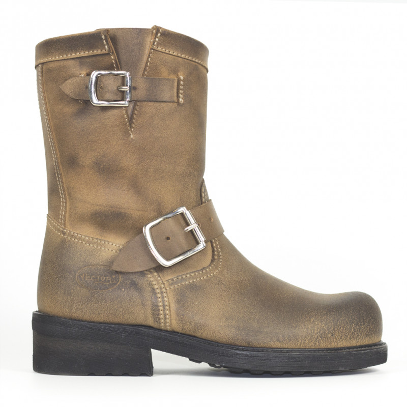 Botas estilo motero en piel envejecida con con caña baja original Hector.