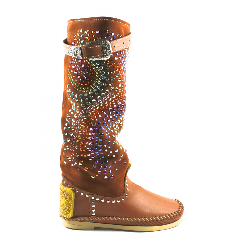 Indianino con caña en gamuza adornada con Cristales Swarovski original Hector.