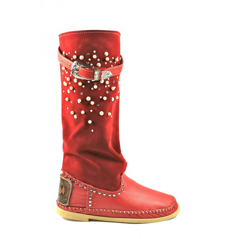 Indianino con caña en gamuza adornada con perlas y cristales swarovski original Hector