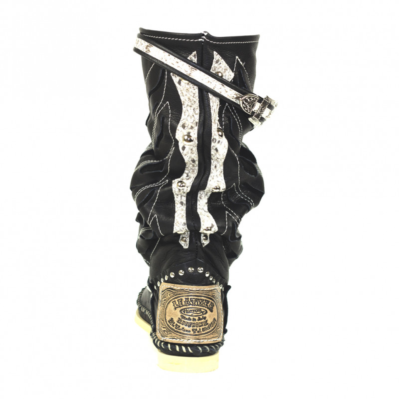 Un icono reinterpretado, donde el trabajo perforado y las inserciones en pitón realzan ligereza y carácter, manteniendo la identidad de los Indianini Hector, nacidos de una historia que comienza en 1976.