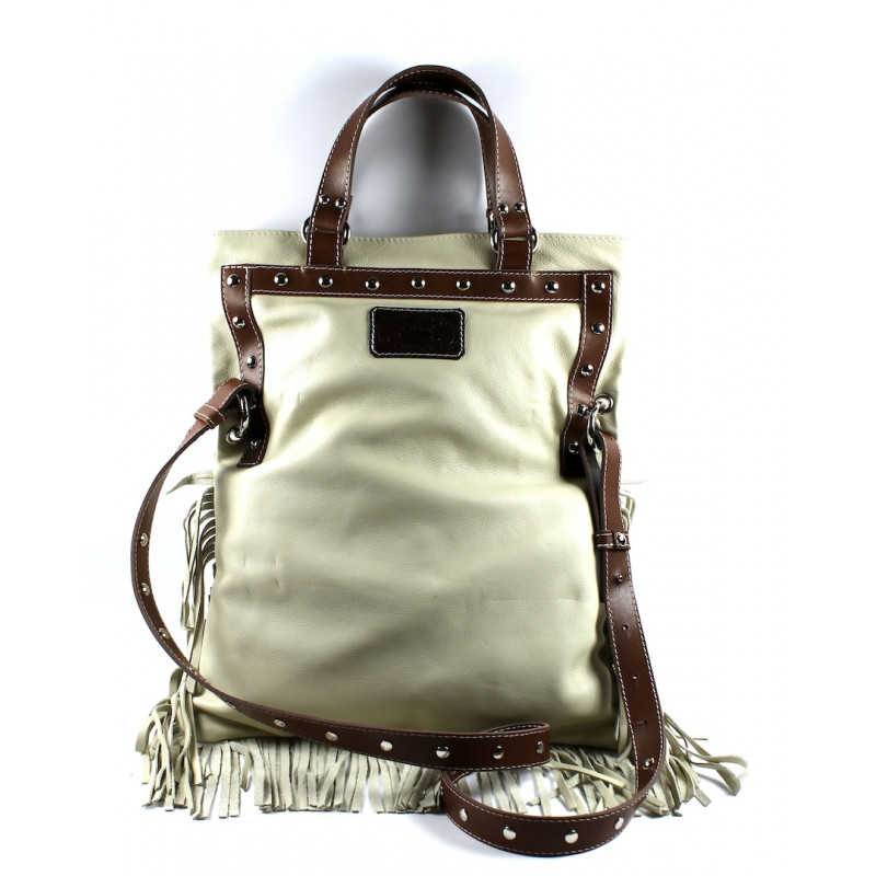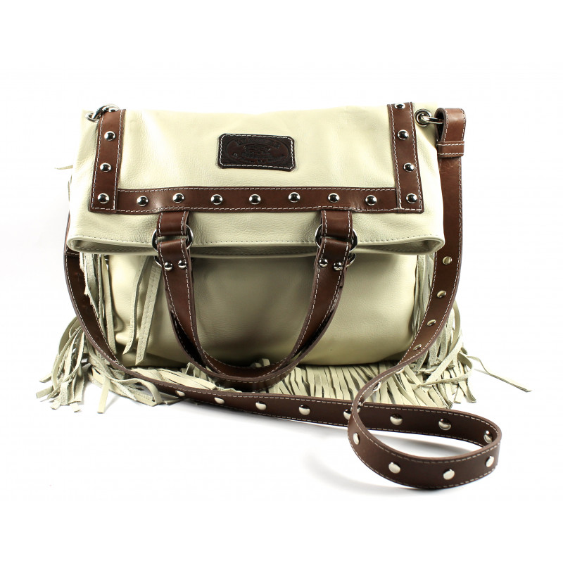 Bolso al hombro y asa en piel con flecos y cierre de cremallera original Hector.