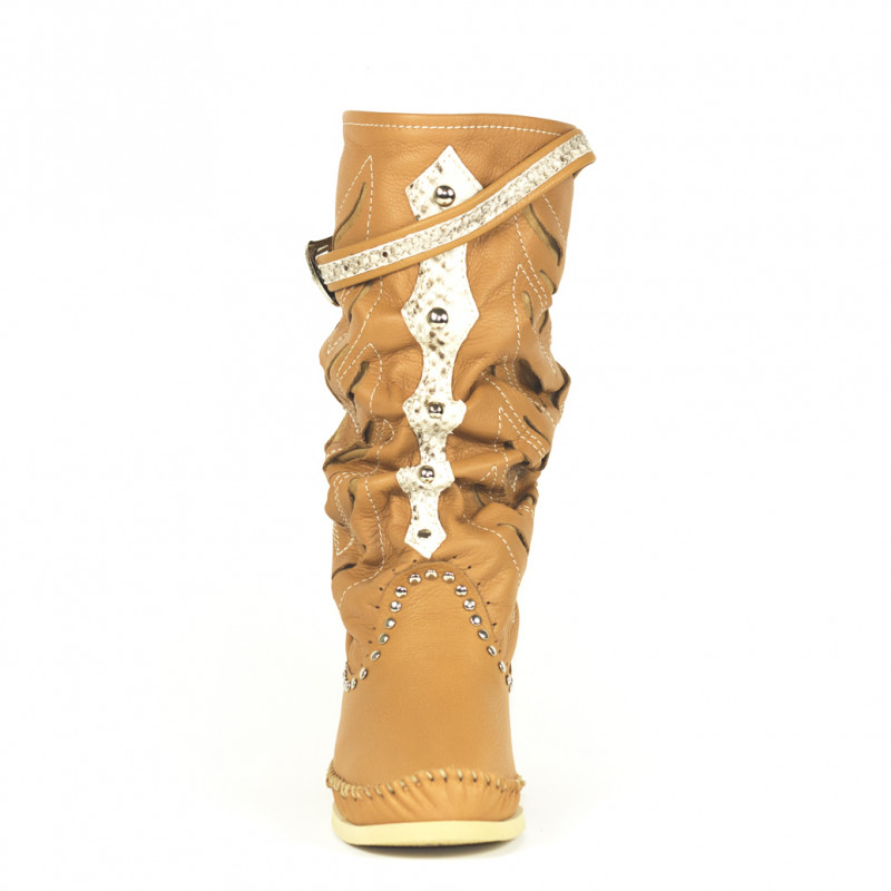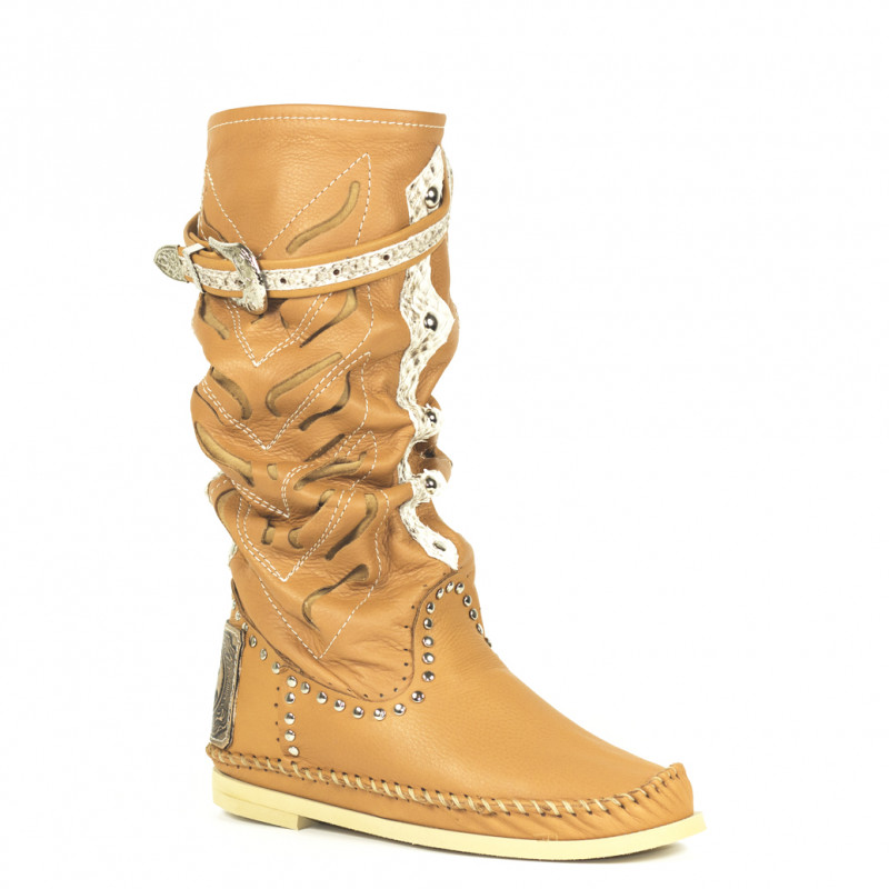 Botas Indianino en piel perforada con inserciones en pitón