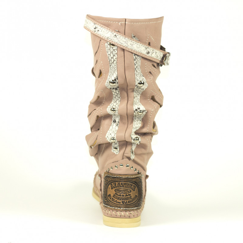 Botas Indianino en piel perforada con inserciones en pitón