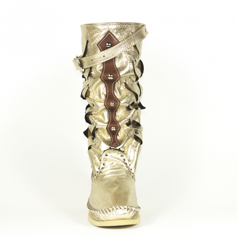 Un icono reinterpretado, donde el trabajo perforado resalta ligereza y transpirabilidad, manteniendo la identidad de los Indianini Hector, nacidos de una historia que comienza en 1976.