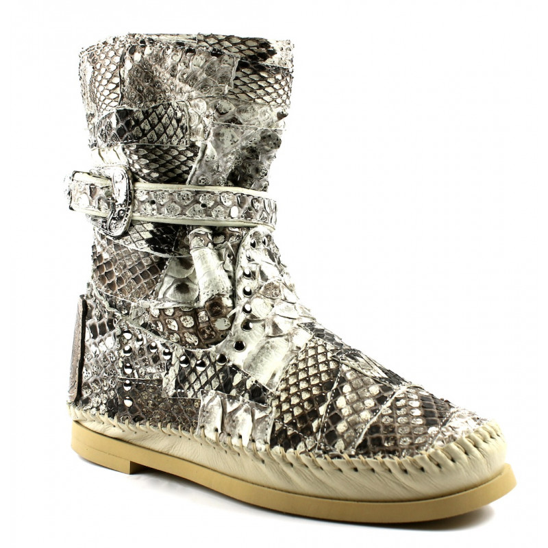 Indianino con caña baja en piel de pitón auténtica patchwork original Hector