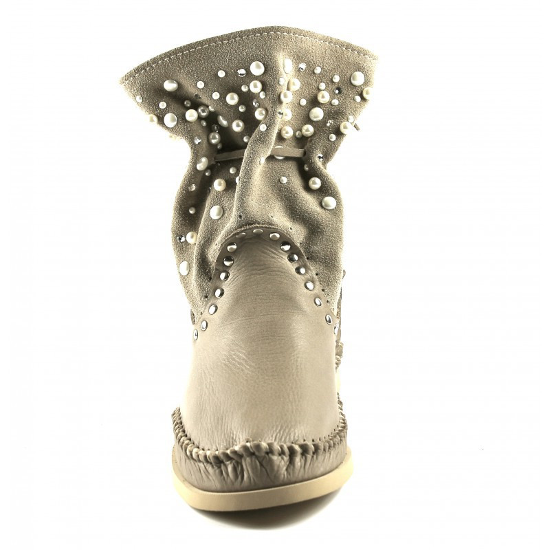 Botin con Caña en Gamuza Adornada con Perlas y Cristales Swarovski Original Hector