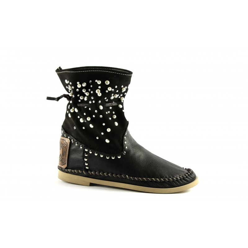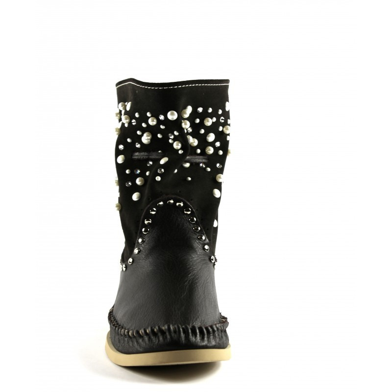 Botin con Caña en Gamuza Adornada con Perlas y Cristales Swarovski Original Hector