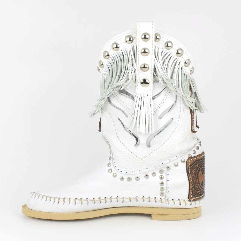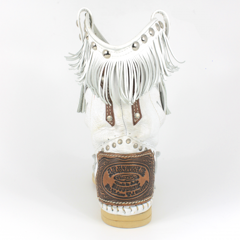 Botin de caña baja con motivo en piel perforada, tachuelas y flecos original Hector