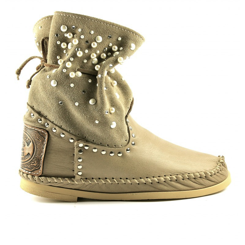 Botin con Caña en Gamuza Adornada con Perlas y Cristales Swarovski Original Hector
