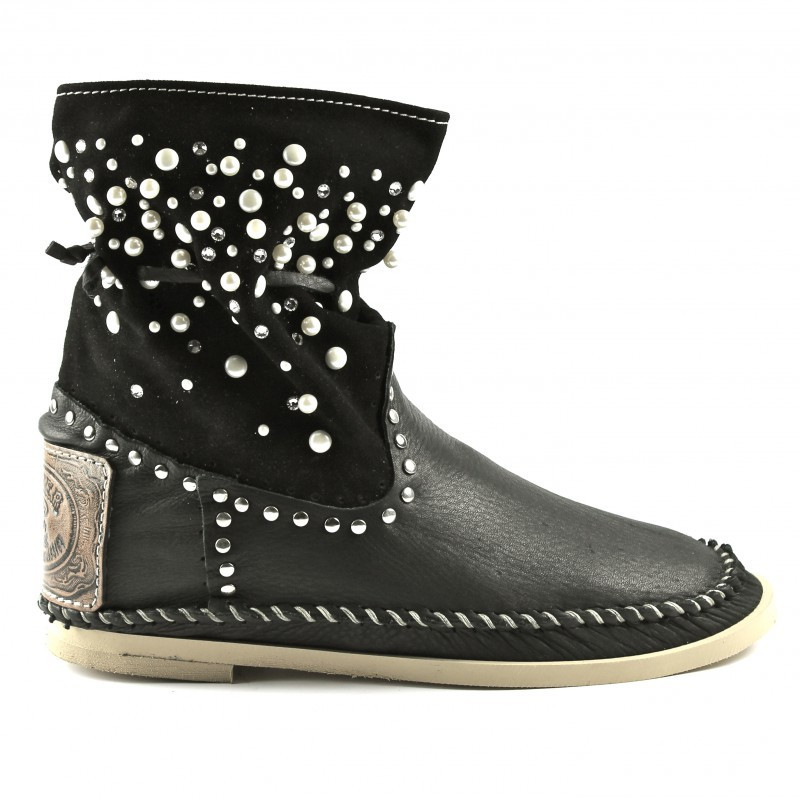 Botin con Caña en Gamuza Adornada con Perlas y Cristales Swarovski Original Hector