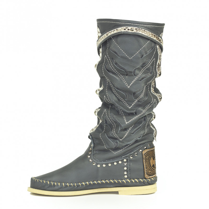 Openwork leather Indianino boots with python leather inserts