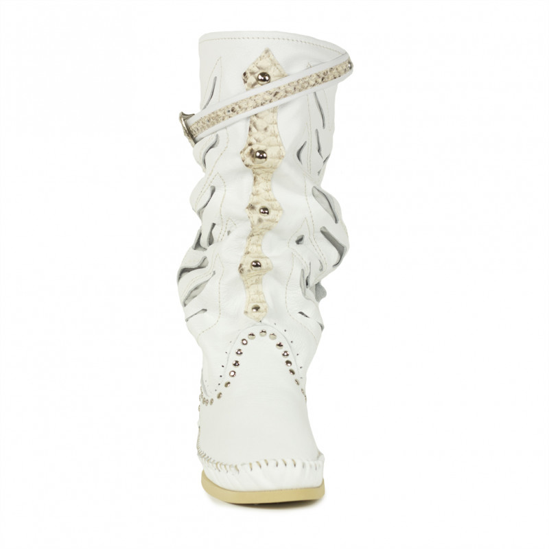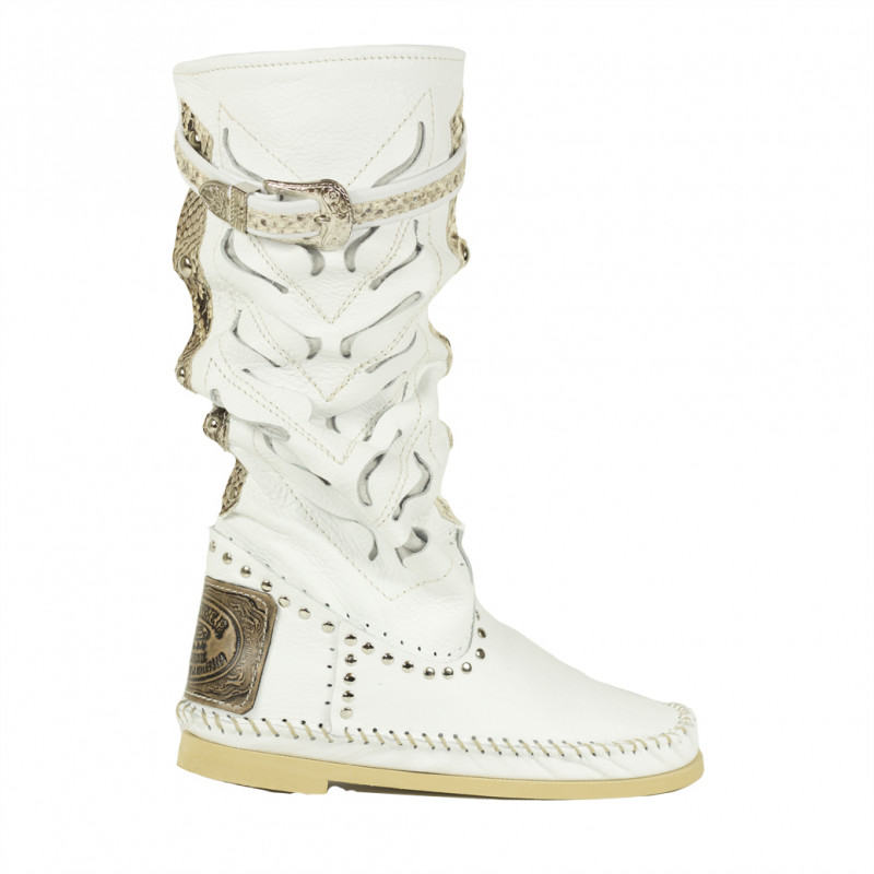 An iconic design reinterpreted, where the openwork craftsmanship and python leather inserts enhance lightness and character while preserving the identity of Hector Indianino boots, rooted in a story that began in 1976.