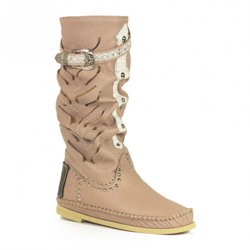 Openwork leather Indianino boots with python leather inserts