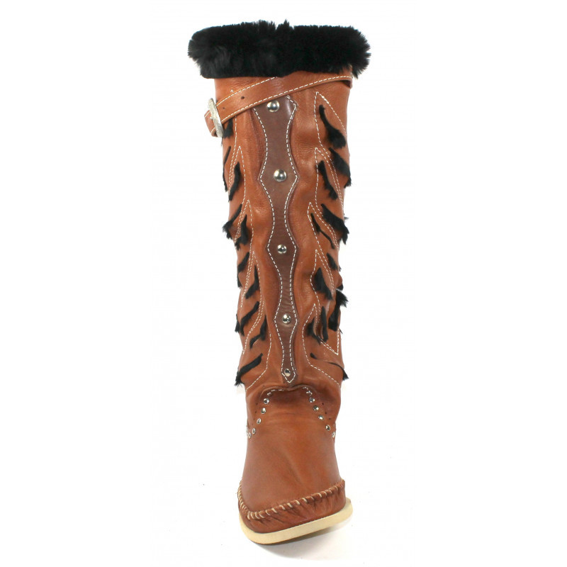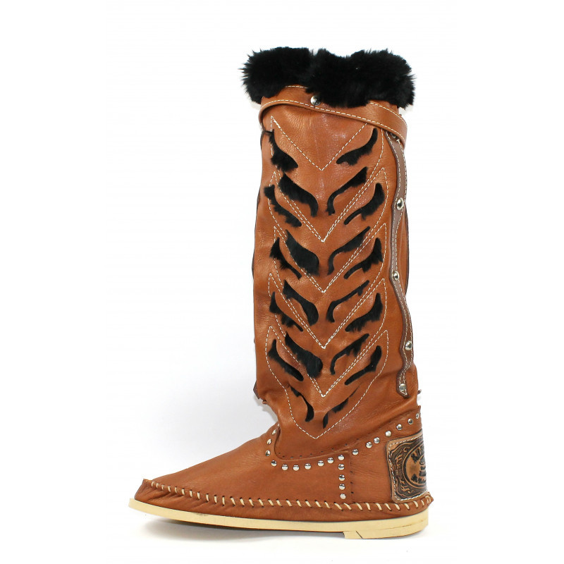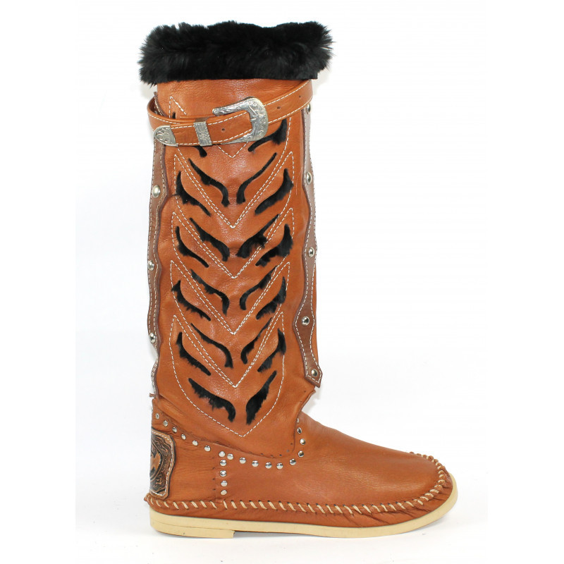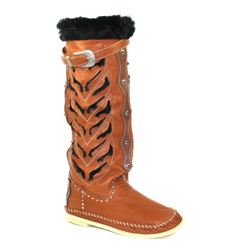 Openwork leather Indianino boots with lapin lining and shearling insole