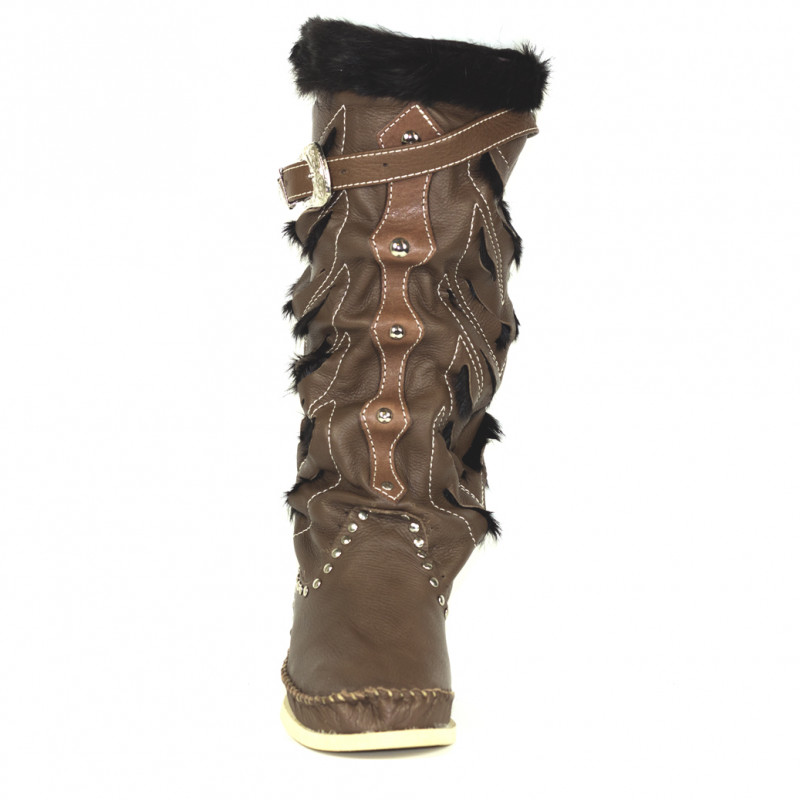 Openwork leather Indianino boots with lapin lining and shearling insole