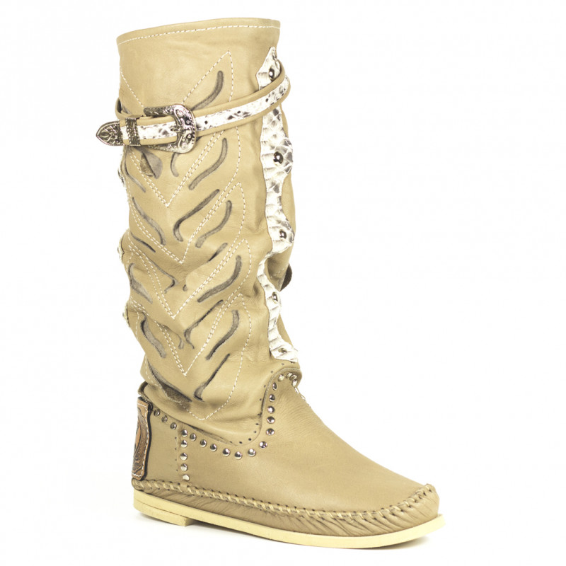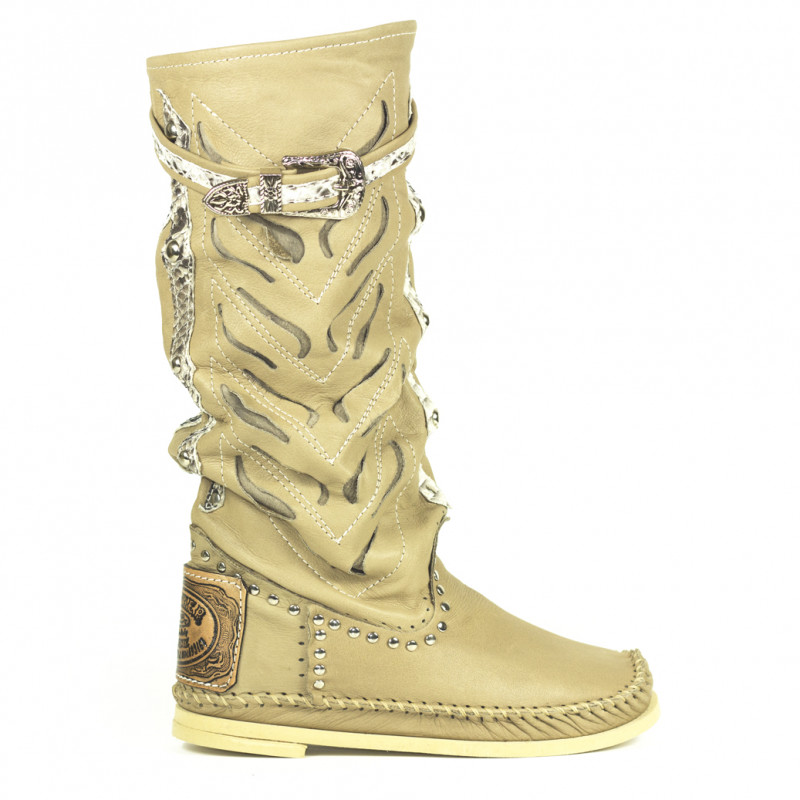 Openwork leather Indianino boots with python leather inserts