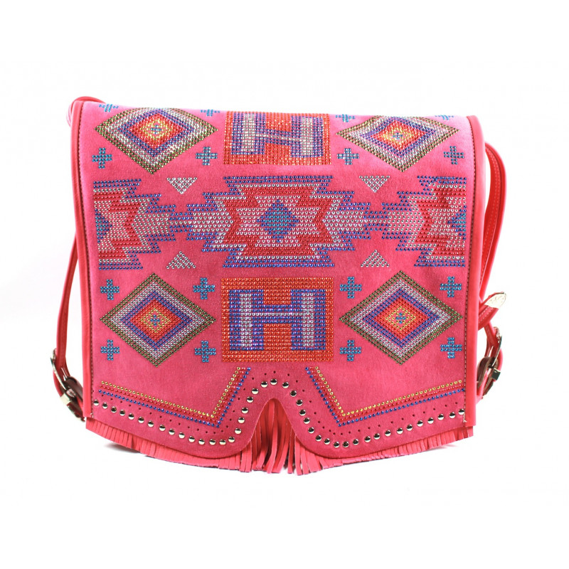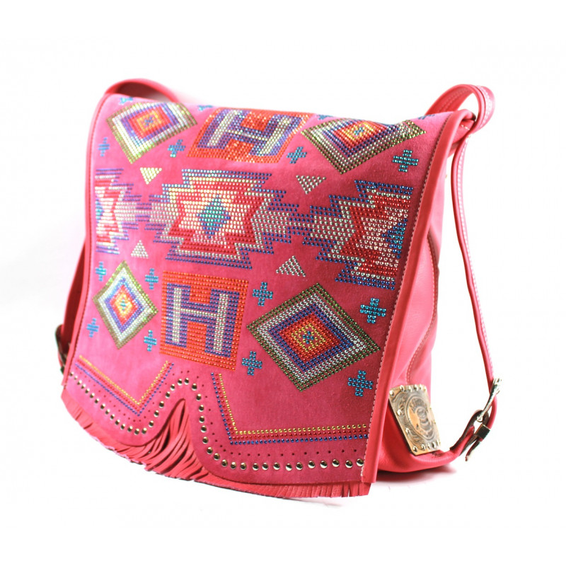 Tracolla Indianina in camoscio con motivo microborchiato navajo originale Hector.