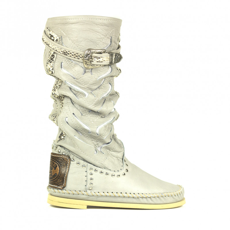 Indianino in pelle traforata con inserti in pitone