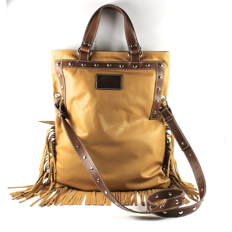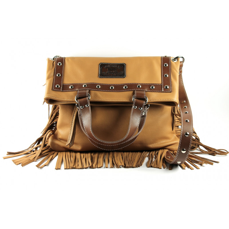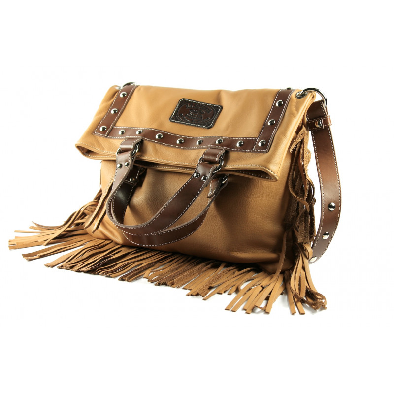 Tracolla in pelle con manici e frange originale Hector. Chiusura con cerniera.