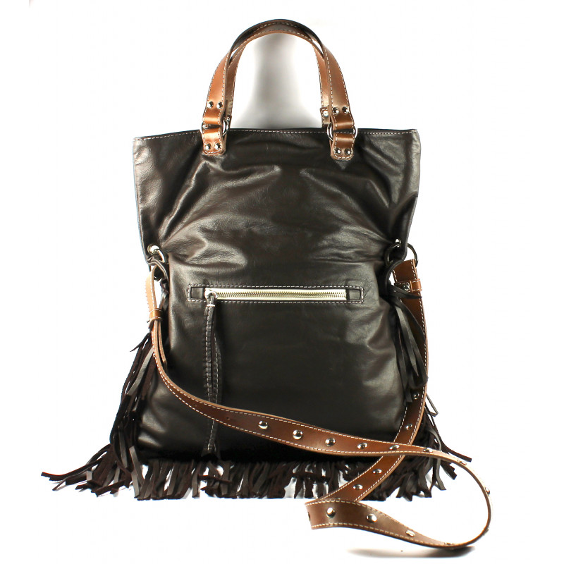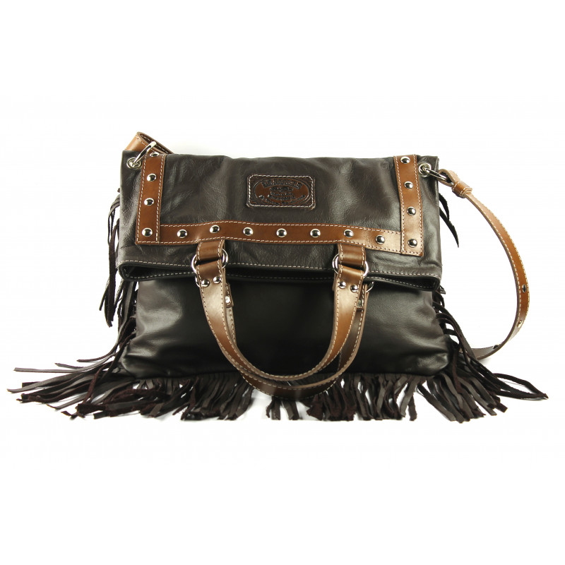 Tracolla in pelle con manici e frange originale Hector. Chiusura con cerniera.
