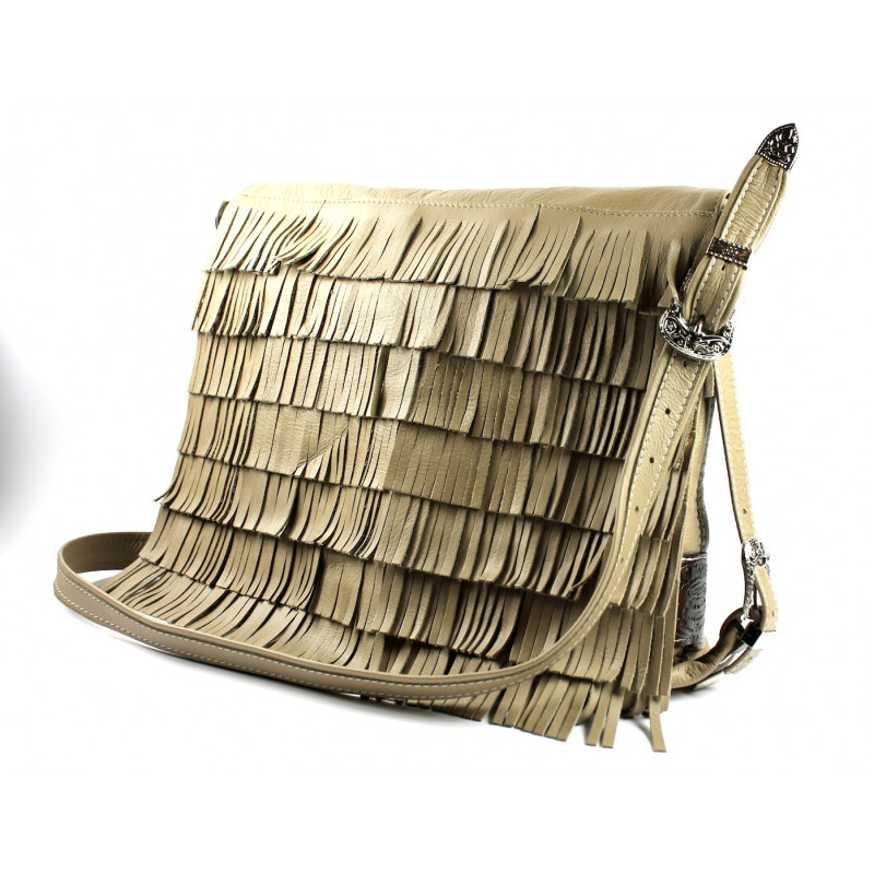 Tracolla in pelle con frange e chiusura con cerniera originale Hector.