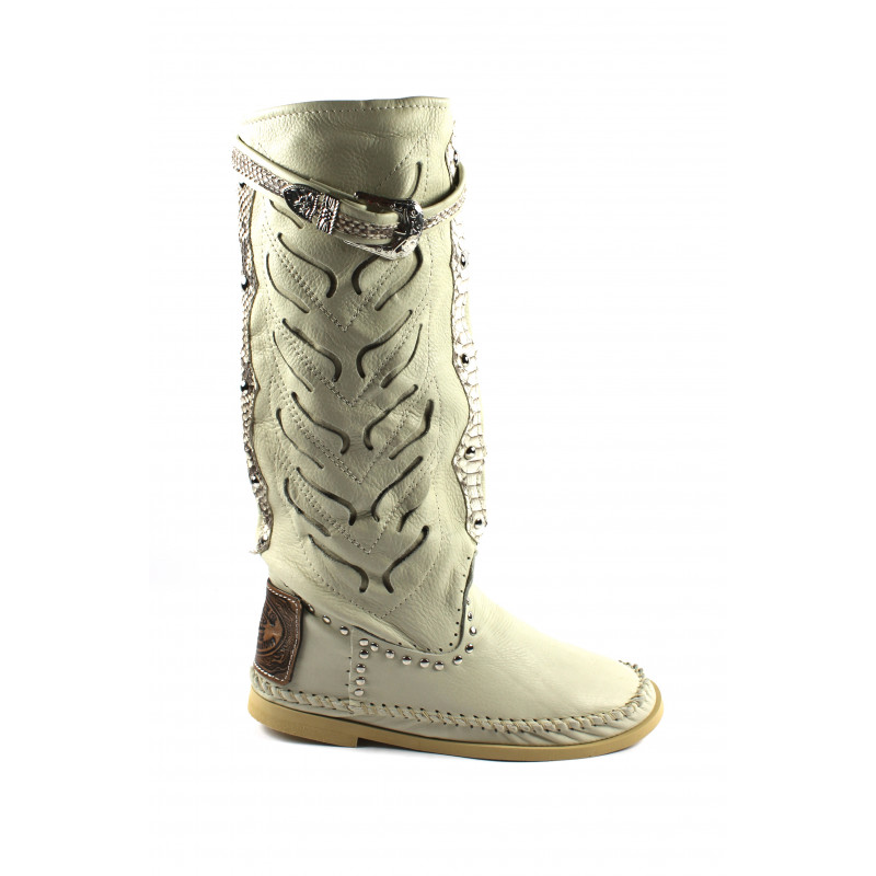 Un’icona reinterpretata, dove la lavorazione traforata e gli inserti in pitone esaltano leggerezza e carattere, mantenendo intatta l’identità degli Indianini Hector, nati da una storia che ha inizio nel 1976.